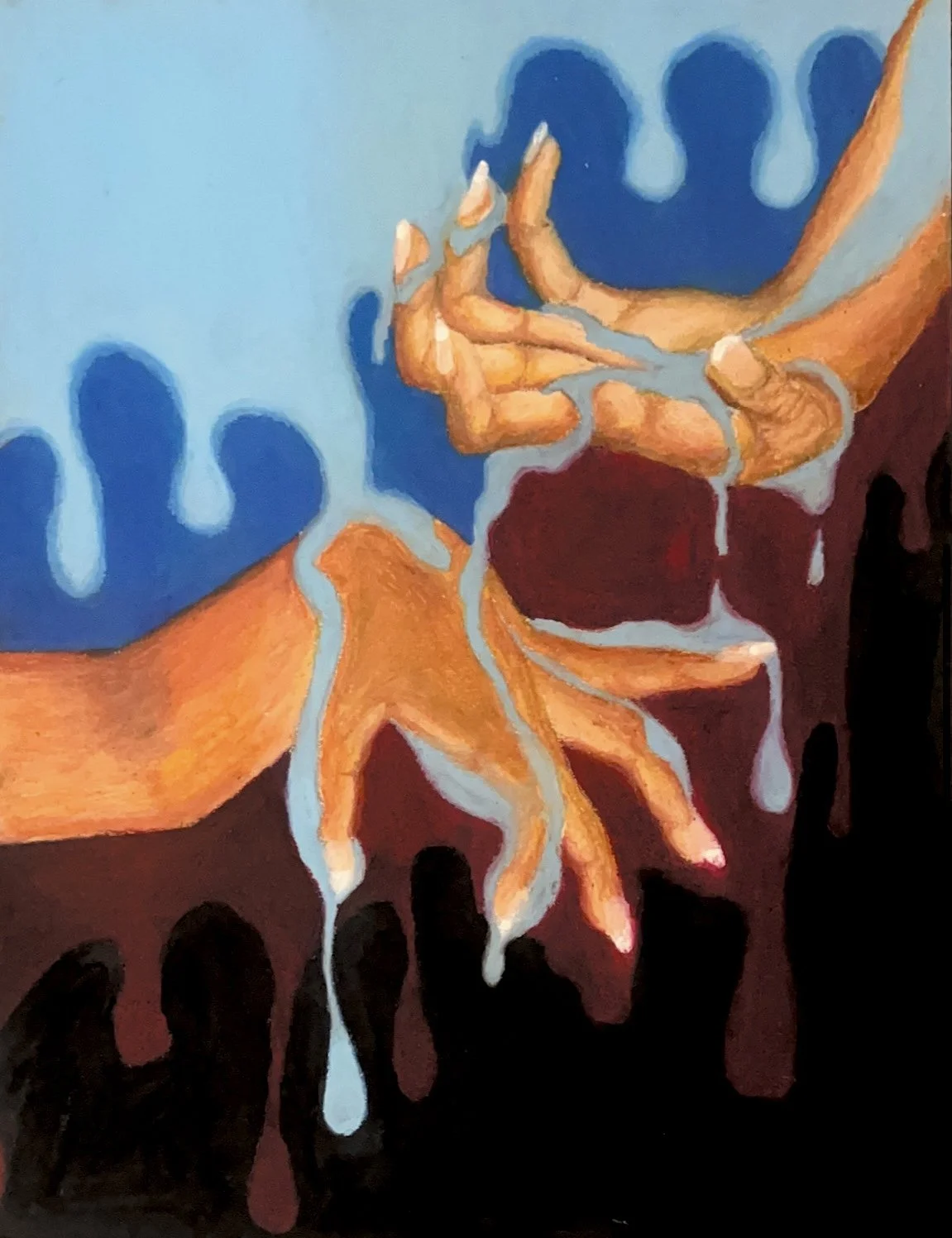 “the overflow” depicts a moment of emotional turmoil. in the midst of overwhelm, one is faced with a choice: to catch and hold the emotion as it washes over you, or to shrink away and shake off each drop of pain. as grief turns to anger, the realization that there is no escape hits like a wave.